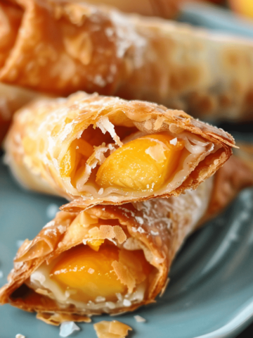 Peach Cobbler Egg Rolls pieces Recipe