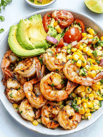 Grilled Shrimp Bowl With Avocado, Corn Salsa & Creamy Sauce Recipe